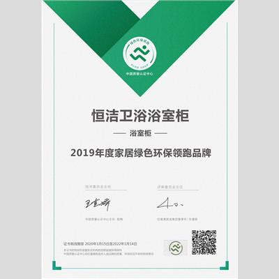 獎 項:浴室柜綠色環(huán)保領跑品牌——恒潔