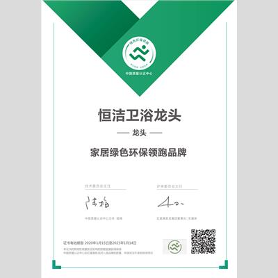 獎 項:龍頭綠色環(huán)保領跑品牌——恒潔