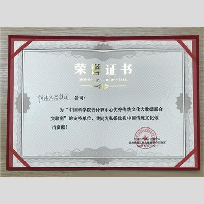 頒發(fā)單位:中國科學院云計算中心優(yōu)秀傳統(tǒng)文化大數據 聯(lián)合實驗室