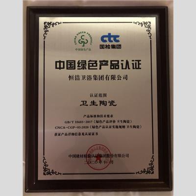 獎 項:中國綠色產品認證——衛(wèi)生陶瓷