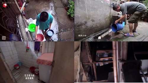 這間有著百年歷史的典型“穿斗式”川西老宅,由于年久失修早已不見“青磚石木”的清雅原貌。不僅屋頂漏雨、房間潮濕、在生活上也極其不便,由于沒有現(xiàn)代的供水系統(tǒng),所有的用水都要靠人力端進去。房屋最原始的木結(jié)構(gòu)房子,已經(jīng)酥爛,幾乎無法支撐自己本身的重量。整個宅子里沒有排污設(shè)施,要上廁所只能去附近的商場,走一個來回要20分鐘,王奶奶只能依靠一個痰盂解決個人問題。