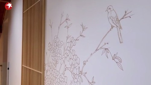 為了給房子增添古樸氣息,設(shè)計師還請來了畫家,為屋子中堂和奶奶房的墻上分別手工繪制了一幅具有傳統(tǒng)寓意的繪畫,為整個空間帶來生動活力。