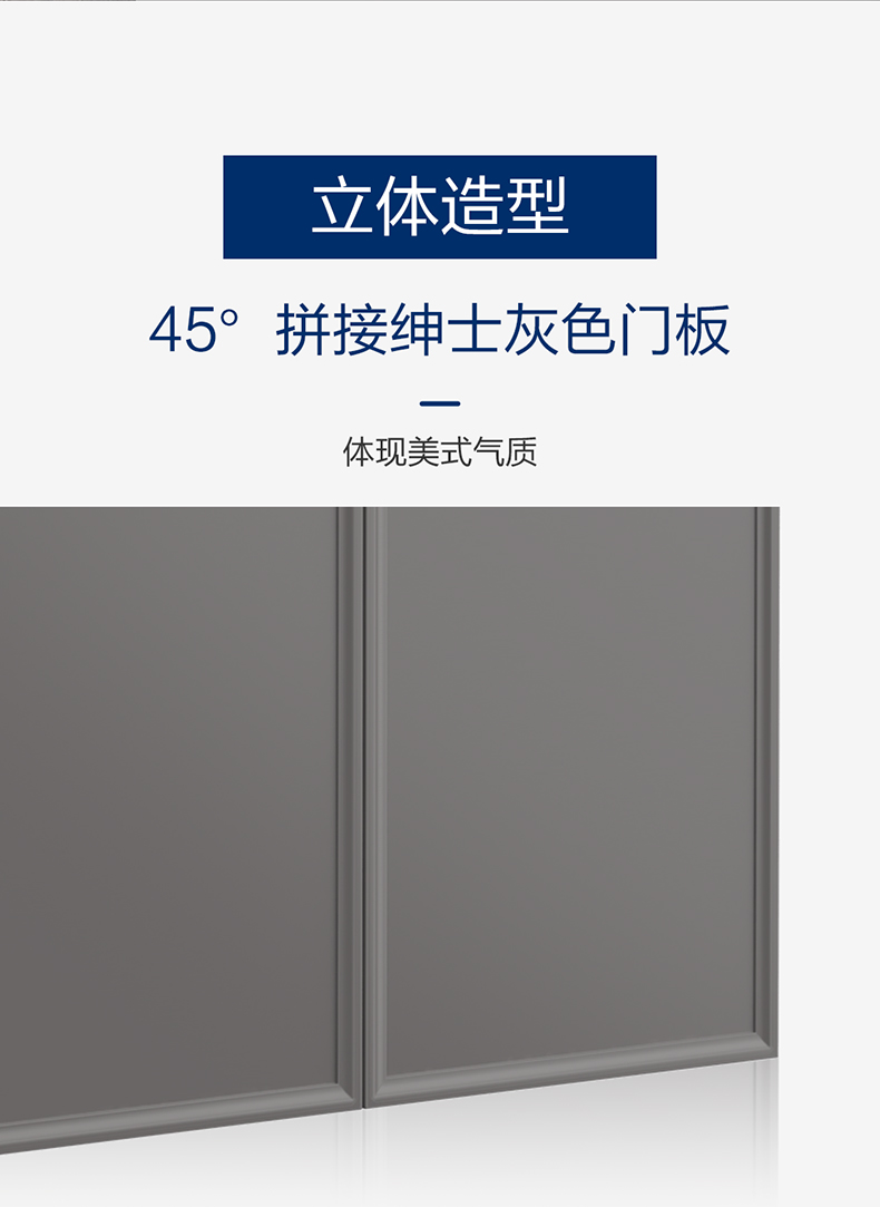 - 45°拼接紳士灰門板,體現美式氣質
