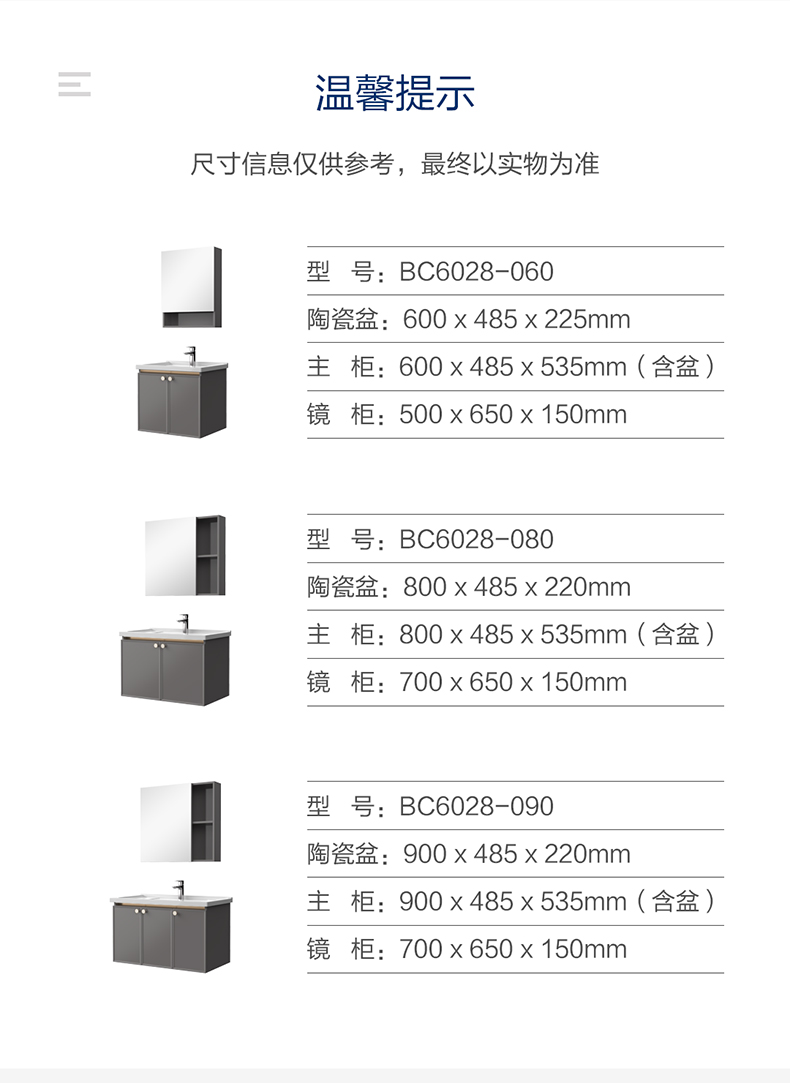 - 主柜尺寸:900x485x535mm(含盆)