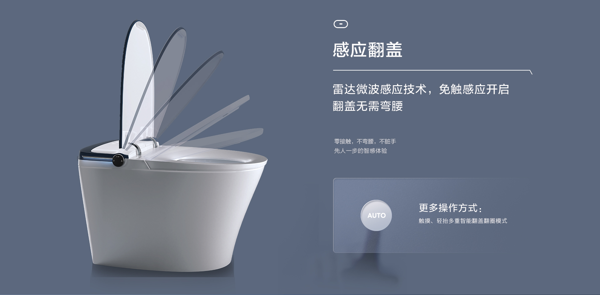 感應翻蓋:雷達微波感應技術,免觸感應開啟,翻蓋無需彎腰