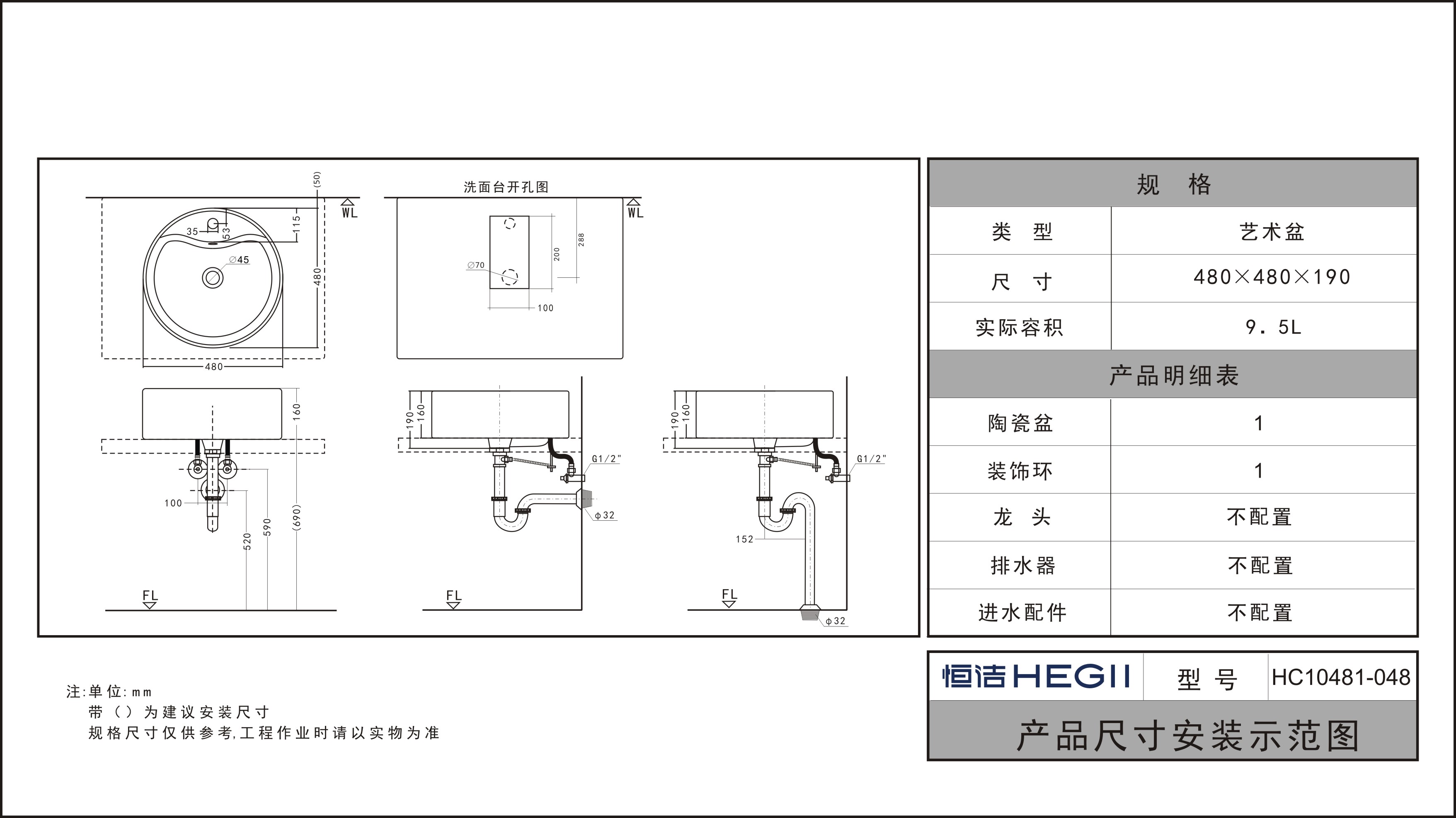 尺寸:480x480x190mm